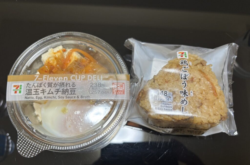 セブンイレブンの温玉キムチと鶏ごぼう味めし!!!