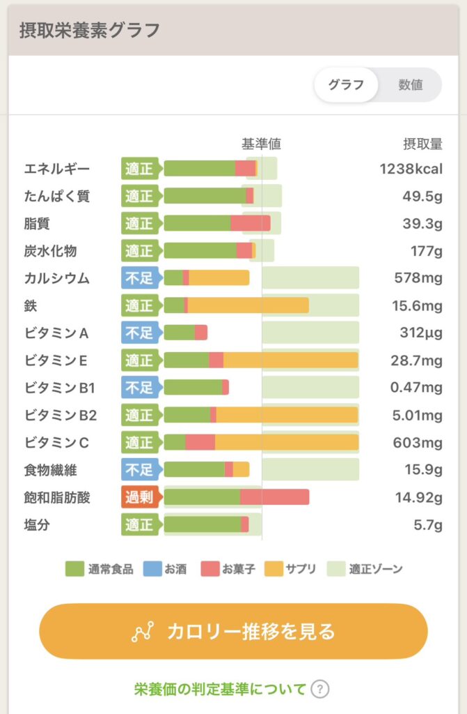 今日1日の栄養素グラフがこちら↓